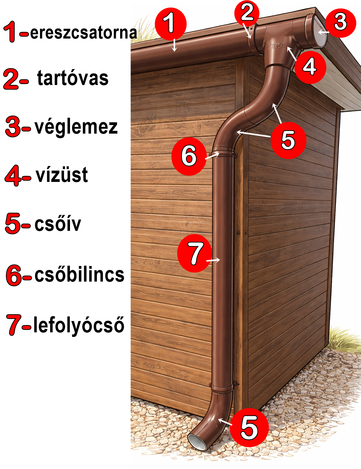 Ereszcsatorna rendszert is értékesítünk. Különböző elemei megvásárolhatóak akár készletről is. Leggyakrabban előforduló színek: horganyzott, RAL7016, RAL3009, RAL8017.